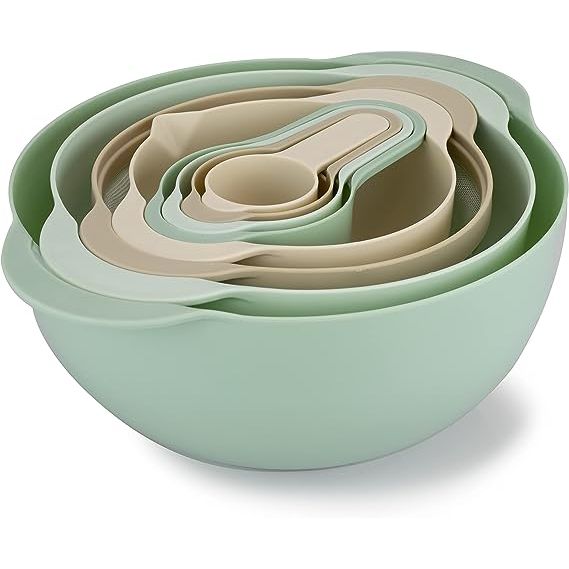 8 Piece Mint Green Kitchenware Set - Includes 2 Mixing Bowls, 1 Colander, 1 Sifter and 4 Measuring Cups