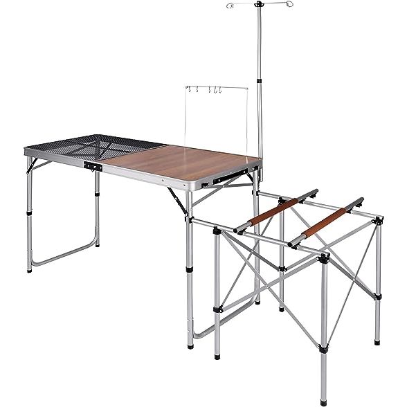 REDCAMP Portable Camping Kitchen Table with Side Stand and Hooks, Folding Camping Cook Station for BBQ, Party and Picnic