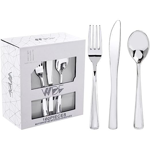 Not only are these silverware pieces beautiful, but they are also disposable and easy to clean. After your party, simply dispose of them or recycle them for a quick and hassle-free clean-up. Our value packaging includes a set of 160 party bulk plastic cutlery that includes 80 silver forks, 40 silver spoons, and 40 silver knives. With this generous amount, you'll have more than enough for your special event and for everyday use.