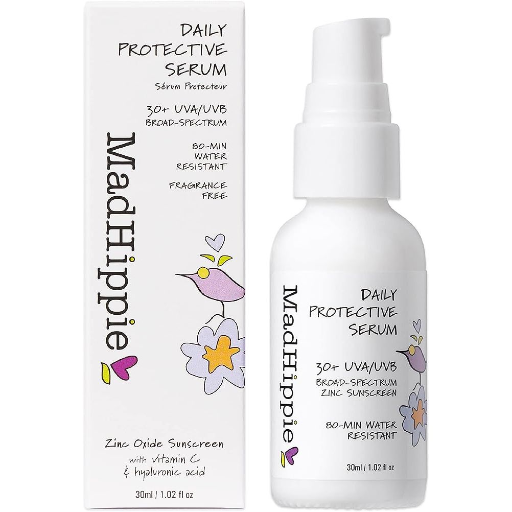 Protect your face from harmful sun rays with our Zinc Oxide Sunscreen. This lightweight and nourishing face serum is filled with beneficial ingredients that combat oxidative stress and provide optimal protection. Our water-resistant formula ensures that the sunscreen stays on your skin, even during exercise or while swimming at the beach. Suitable for all skin types, including sensitive skin, our SPF moisturizer contains non-nano zinc oxide particles that stay on the skin until washed away. To achieve the best results, apply as the last step in your morning skincare routine and remember to reapply after swimming or exercise. By choosing Mad Hippie, you are not only caring for your skin but also supporting our mission to create a more beautiful world through conservation and empowerment projects. This product is unisex, suitable for both men and women.