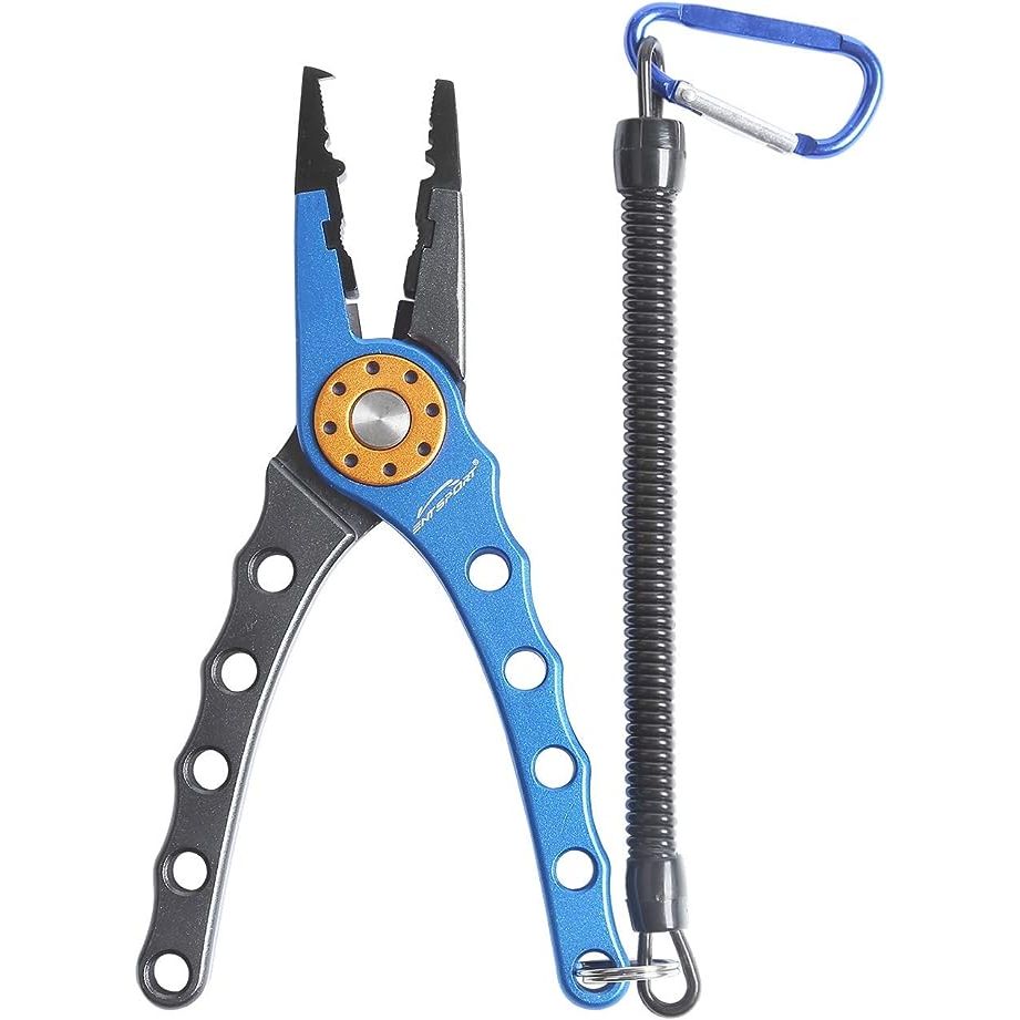 Crafted with high-tech aircraft-grade aluminum, these fishing pliers boast a lightweight and sturdy construction that guarantees long-lasting durability. The anodized finish adds an extra layer of protection, effectively preventing corrosion and ensuring its sleek appearance over time. Equipped with stainless steel jaws, these pliers offer an exceptional level of strength and resilience, making them a perfect companion for any angler. The high-quality tungsten steel blade further enhances their performance, providing sharpness and prolonged work-life. With the added convenience of a lanyard and a high-quality sheath, these multi-function fishing pliers are effortless to store and transport, making your fishing adventures hassle-free. From removing hooks and holding fish to cutting lines or hooks and pressing lead, these pliers are the ultimate tool for every angler's arsenal.