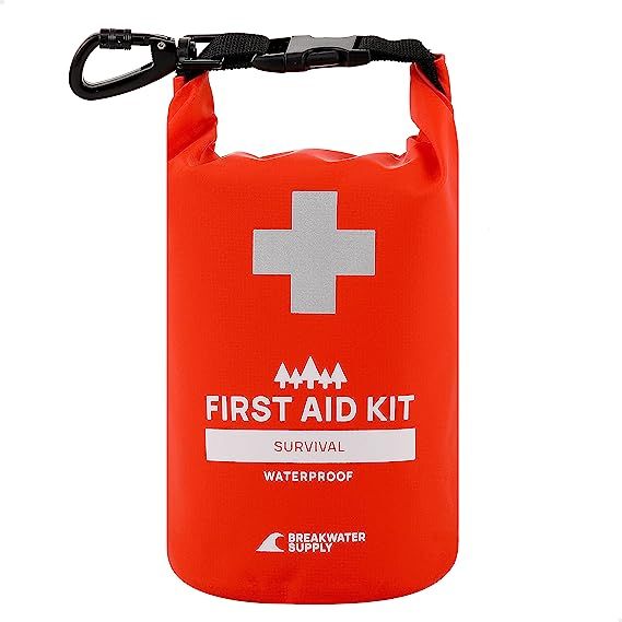 Breakwater Supply™ Waterproof First Aid Kit Dry Bag Bug Out Bag, Emergency Survival Supplies for Boating, Camping, Kayaking + Heavy-Duty Carabiner, Floating, Reflective, Lightweight