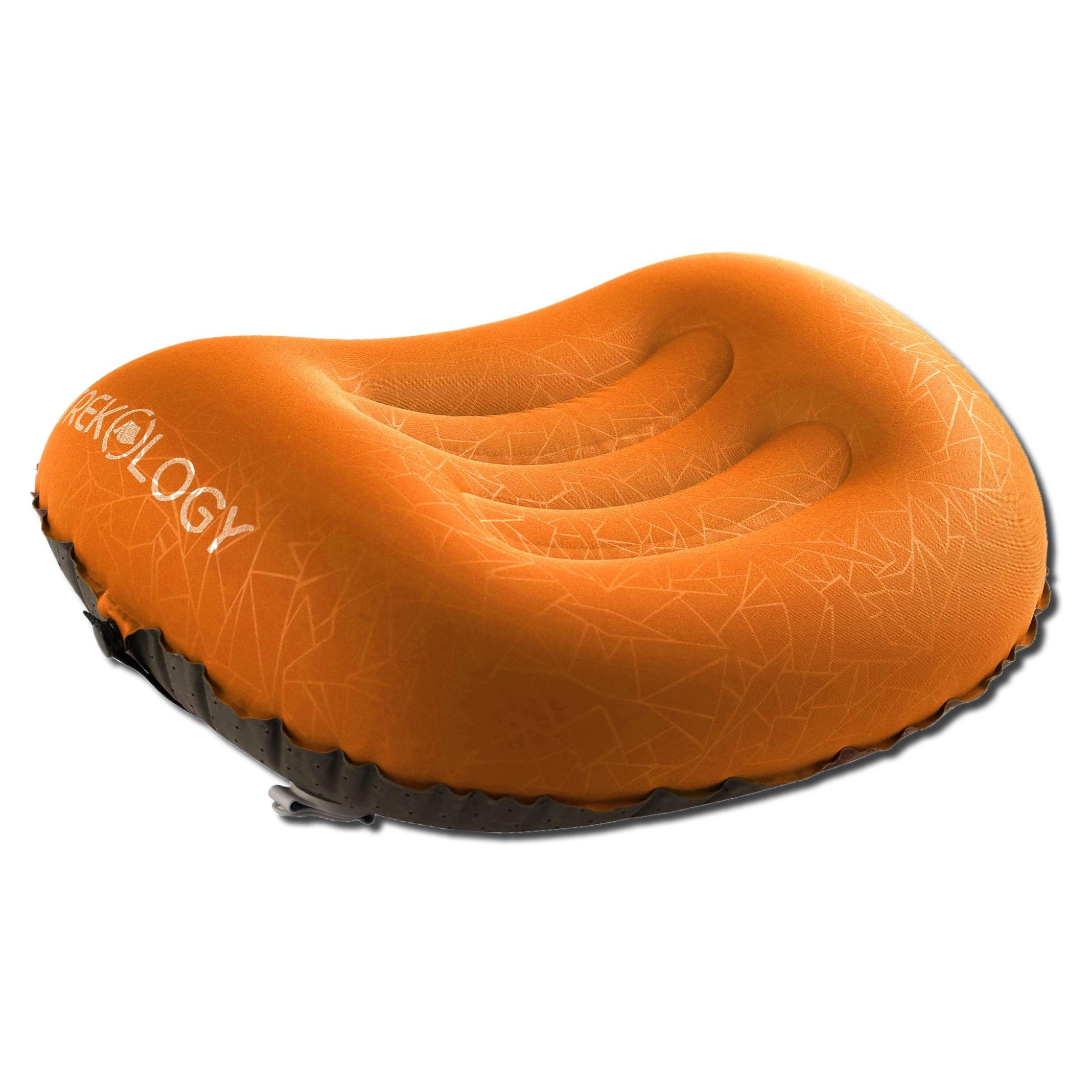 The TREKOLOGY Ultralight Inflatable Camping Travel Pillow - ALUFT 2.0 is a compressible, compact, comfortable, and ergonomic inflatable camping pillow designed to provide neck and lumbar support for campers, hikers, backpackers, and travelers.