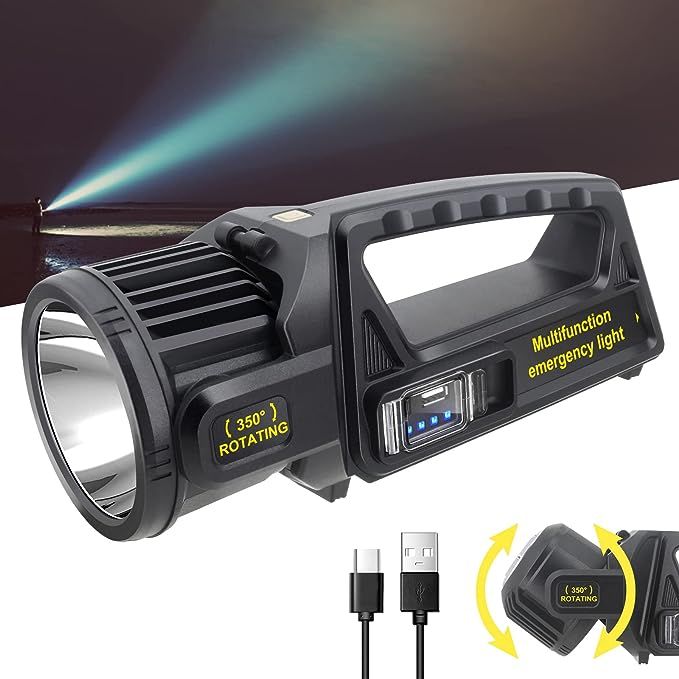 ✨Illuminate Every Dark Corner: Let there be light! Our LED flashlights with high lumens will illuminate even the darkest of nights. With an astounding 300000 lumens of brightness, you'll never miss a single detail. This powerful device offers an impressive lighting distance of 4000 feet, making it the perfect companion for exploring dark environments and handling emergency situations. Inside, you'll find an adjustable head that can rotate up to 350 degrees, allowing you to effortlessly switch between near and far lighting modes. Say goodbye to ordinary spotlights - this design is a game-changer.✨