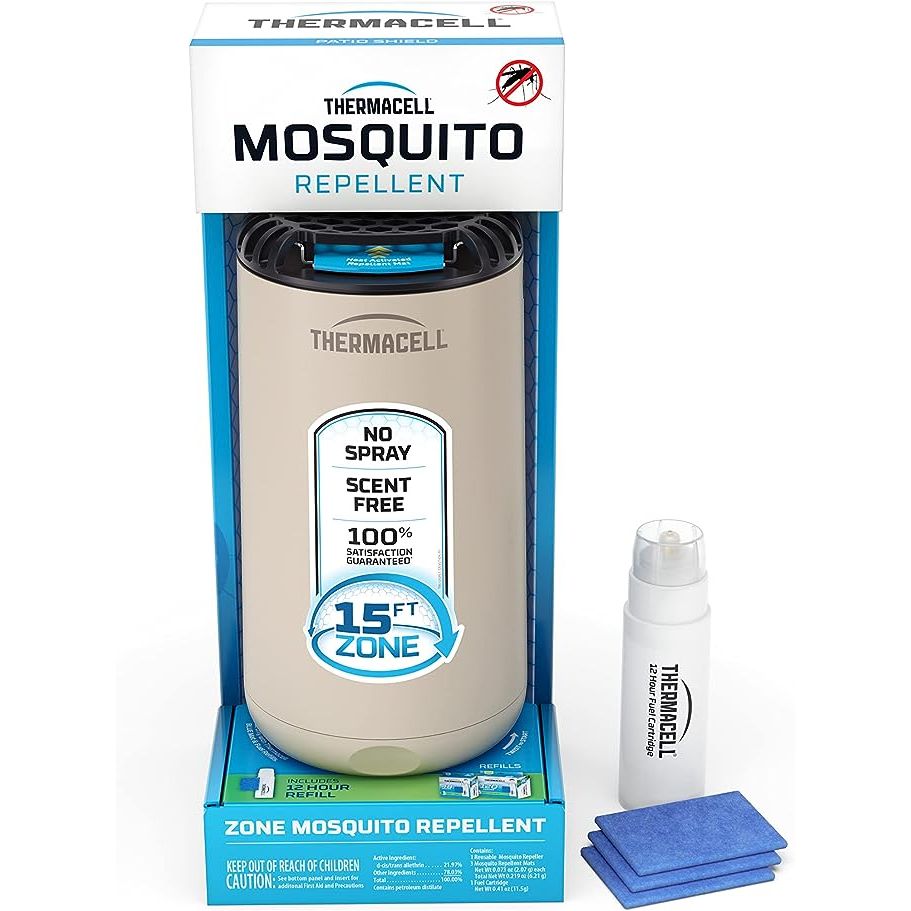Patio Shield Mosquito Repeller by Thermacell; Powerful Mosquito Repellent for Outdoor Areas; Candle and Flame-Free Solution, DEET-Free with No Distinct Scent; Non-Bugspray Option; Comes with 12-Hour Refill