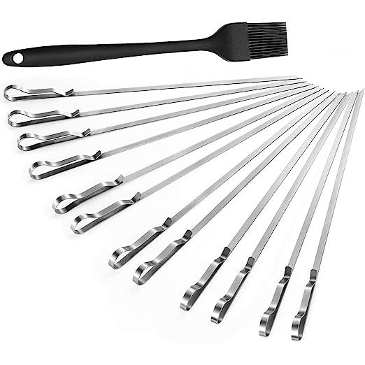 Steel BBQ Skewers 17+7/20 Flat Grilling Skewers Set, Reusable 13-Piece BBQ Sticks