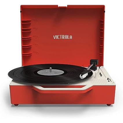 TAKE YOUR TUNES ANYWHERE - Designed for ultimate flexibility, this modern-style suitcase turntable from Victrola allows you to take your tunes wherever you go. With its easy carry handle and lightweight construction, you can enjoy your favorite vinyl records in any location. Whether you're a vinyl lover or simply enjoy the classic sound, this turntable is the perfect choice.