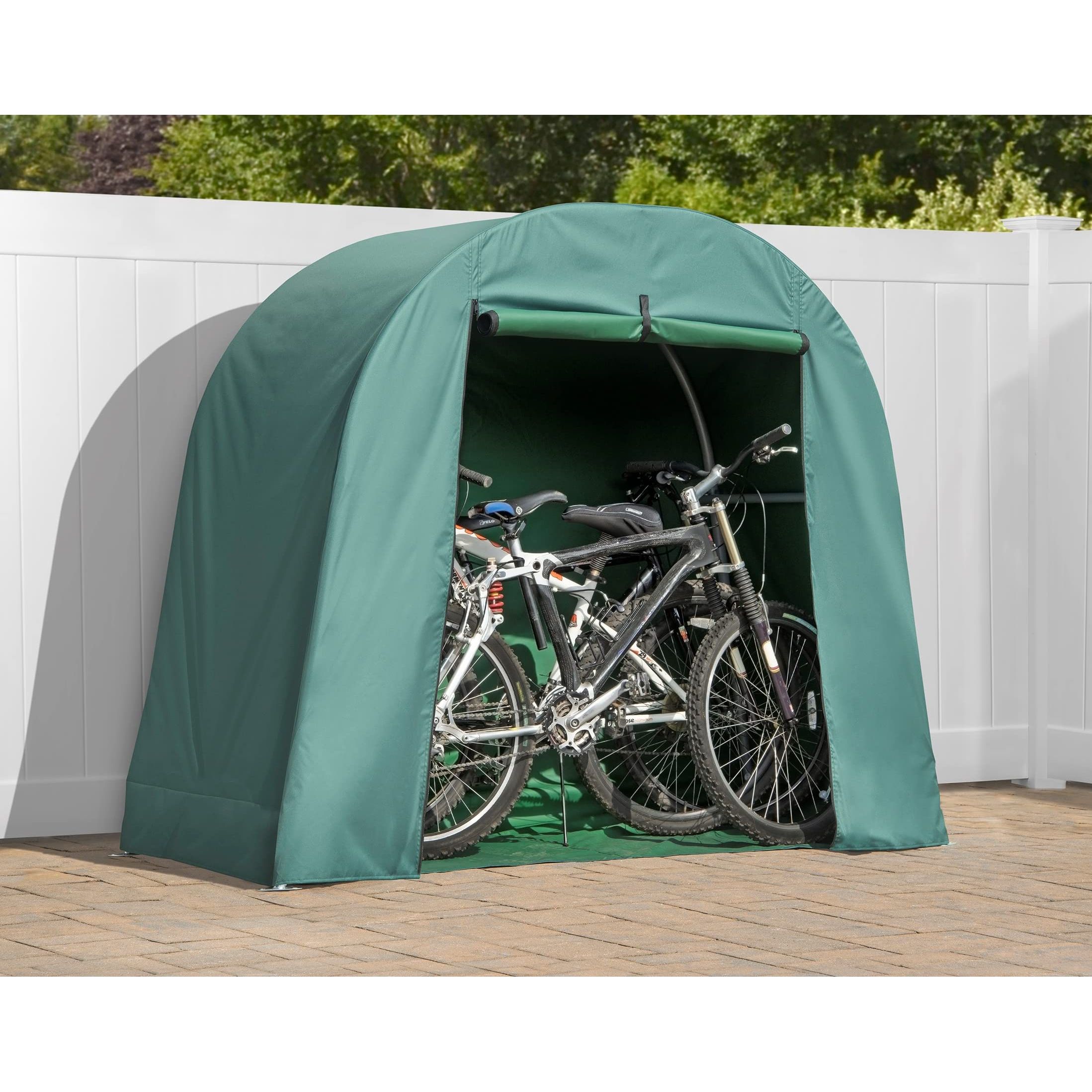 EASY TO BUILD: Offers a quick 30 minute assembly. RAIL TITE TENSION: Cover attaches easily with our bungee cord rail tension system that also keeps the cover smooth and taut. SMALL STORAGE SOLUTION: Compact and portable 6'8 x 3' x 5'6 water-resistant bike and outdoor storage shed keeps bikes, tools, and more safe and secure from various weather conditions. DURABLE AND STRONG: Shed frame is constructed of 1 steel and features a premium powder coat finish that protects frame from corrosion, chipping, and rust. Make sure this fits by entering your model number.. PROTECTION FROM THE ELEMENTS: Durable water resistant 300D polyester floor and cover keep your stored items dry, while the UV treated cover protects your belongings from harmful UVA and UVB rays. DURABLE STORAGE FRAME: Bolted connections make the frame strong and sturdy for daily or seasonal storage and large zippered door allows access to your bikes and other stored goods for easy removal and storing. COMPACT BIKE STORAGE: Measures 81.82 W x 35.21 D x 66.55 H and offers 86 cu. ft. of outdoor storage space