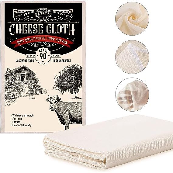 Dayetzo Unbleached Cotton Muslin Cloth for Straining - Grade 90 Organic Cheesecloth 18 Sq. Ft (2 Yards) with Hemmed Edges – Ultra Fine, Washable Cloth for Cooking, Baking, and Holiday Decorations