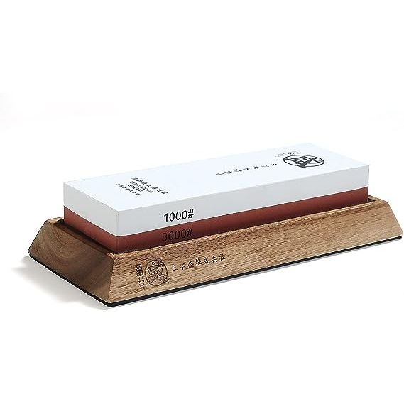 Japanese Knife Sharpening Stone, Kitchen 1000/3000 Grit Double Side Sharpener Whetstone, Bamboo Seat Knife Sharpener Stone and Sharpening Guide.