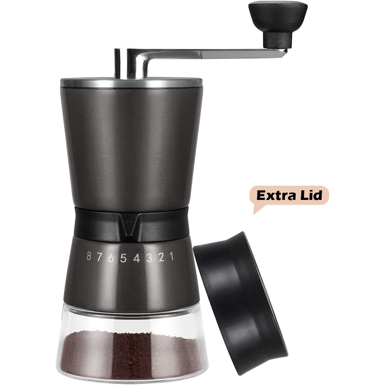 Crank Café - Portable Coffee Bean Grinder featuring Ceramic Grinding Mechanism, 15 Adjustable Grind Options, and Additional Protective Lid