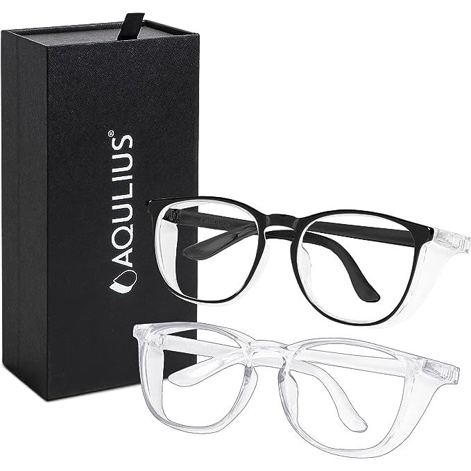 Aqulius Fashionable Protective Eyewear (Set of 2 - Protective Goggles) Clear Vision, Anti-Mist Scratch Resistance, Enhanced Side Shielding Against Blue Light