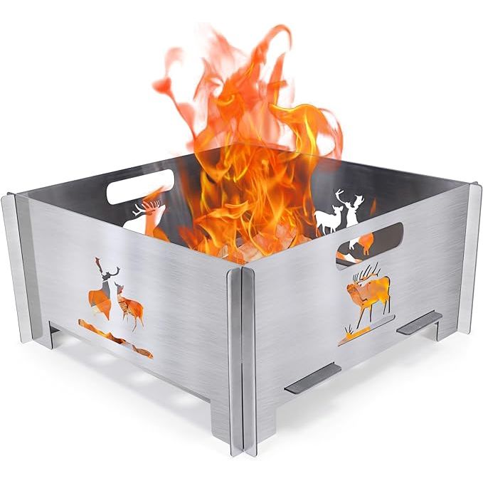 Made from durable stainless steel, this fire pit is designed for outdoor use and can withstand high temperatures. The foldable design allows for easy set-up and take-down, making it a convenient option for on-the-go activities. The 15.8 inch size is ideal for small gatherings or cozy nights around the fire.